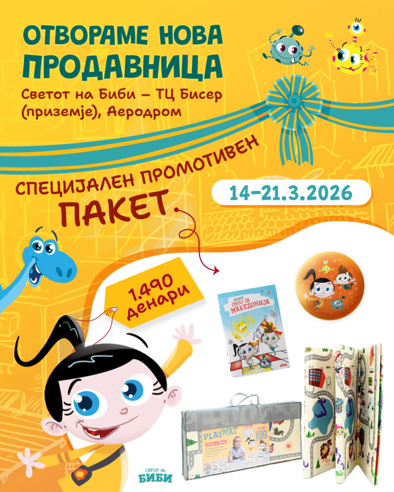По повод отворањето на новата продавница „Светот на Биби“ во ТЦ Бисер (приземје) подготвивме специјален промотивен пакет за најмалите.