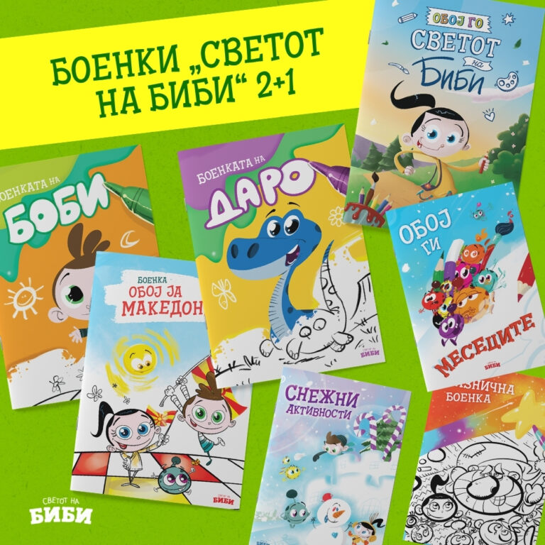 „Водена боенка Светот на Биби“ е иновативна и забавна активност за најмалите дечиња што комбинира игра и учење преку боја – без боички и моливи. Со специјална четка што се наполнува со вода, детето само поминува преку страниците и магично се појавуваат шарени бои и илустрации. Откако страниците ќе се исушат, боите исчезнуваат, што значи дека книгата може повторно да се користи за бескрајна забава.