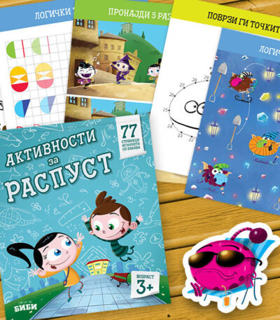 Со повеќе од 90 шарени стикери и омилените ликови Биби и Боби, секоја страница претставува нова авантура низ која децата развиваат предчитачки и математички вештини, фината моторика и логичкото размислување. Учењето станува игра исполнета со радост, креативност и самодоверба.
