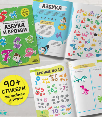 „Активности со Биби и Боби – 90+ стикери за Азбука и Броеви“ е забавна и интерактивна книга што ги комбинира учењето и играта во едно магично искуство. Наменета за деца од предучилишна и рана училишна возраст, книгата им помага на најмалите да ги совладаат буквите од азбуката и броевите преку лепење стикери, поврзување, броење, боење и решавање едноставни задачи.