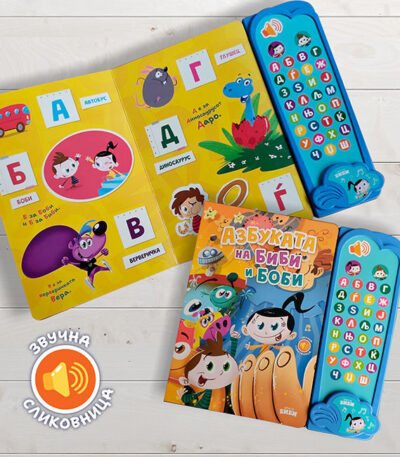 „Звучна азбука со Биби и Боби“ е интерактивно едукативно издание што им помага на децата брзо и лесно да ги научат буквите на македонската азбука заедно со омилените херои Биби и Боби. Книгата комбинира слушање на звучни сигнали со визуелни и тактилни елементи за поефективно учење и запомнување. Производот нуди: