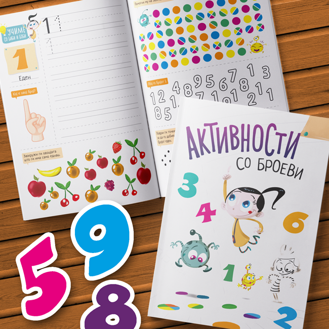 Оваа книга со забавни и креативни активности преку која ке ги научиш броевите од 1 до 10.
